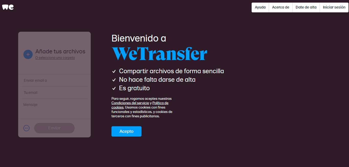 Es una aplicación basada en la nube especialmente diseñada para la transferencia de archivos. Además, no le obliga a crear una cuenta para poder utilizarlo. Permite compartir archivos imposibles de enviar a través de correos electrónicos.